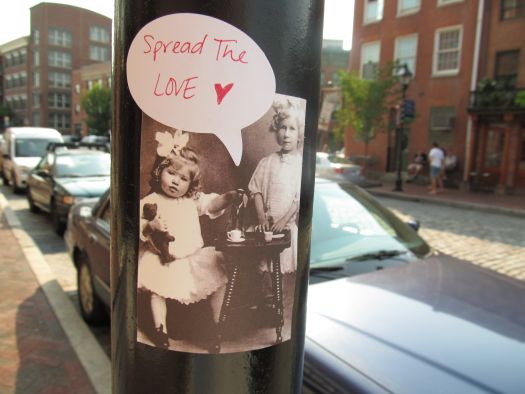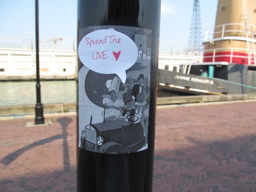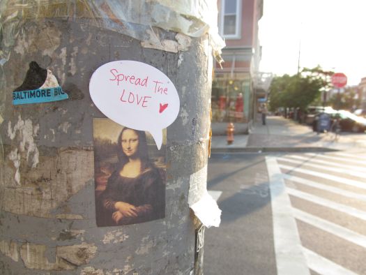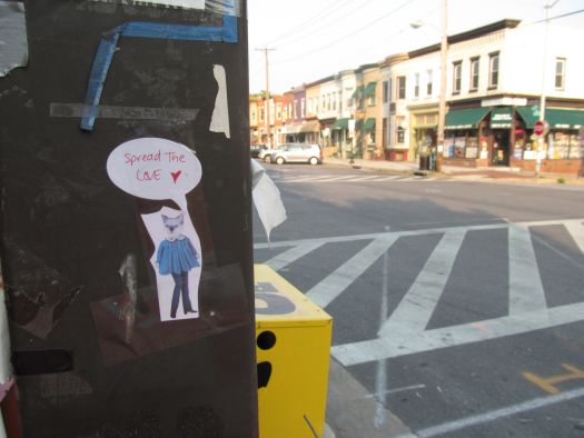 At the beginning of June I posted about my Spread The Love flyers that I posted all around Baltimore and Miki‘s corresponding project. I also mentioned that I didn’t want those flyers to be the end of that idea. I wanted it to have movement.