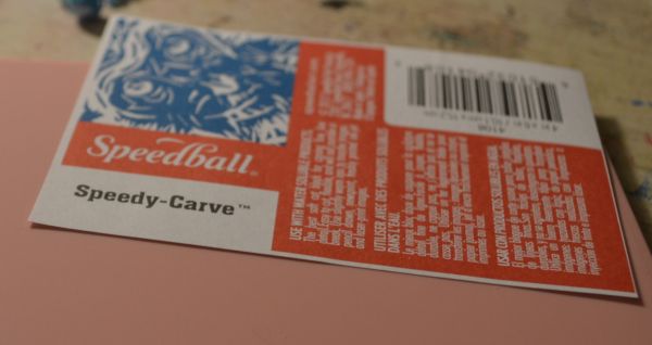 This is the brand of eraser-like material I used. Speedball. It’s very soft and easy to carve. I just used a regular X-Acto knife.