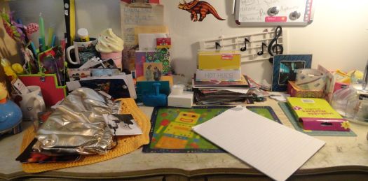 It gave me an opportunity to organize everything and find some old things that I haven’t used yet! I wrote three letters afterwards [so it’s working].When’s the last time you organized your work space?