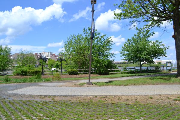 The main middle ground between our houses is Laurel, so we tried to find a place to do it there. The first park we picked had been burned down in March. And when Michelle got to the back up park, it was inaccessible, due to a street festival. We persevered, and found a nice park with a lake.