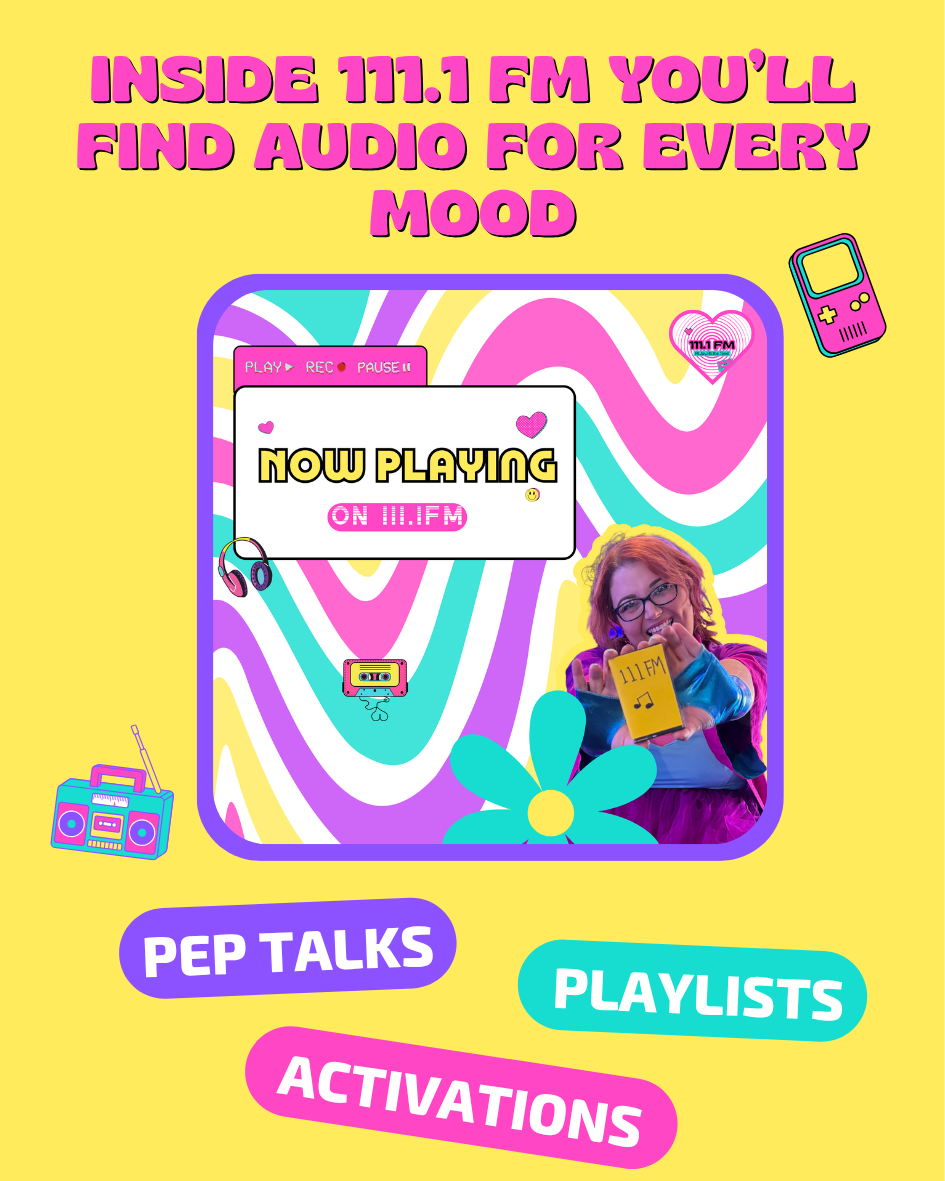 Not in your car, but in your heart. It’s a retro-inspired, joy-fueled audio vault you can stream anytime — no algorithms, no ads, just good vibes on repeat. FM = For Merriment.