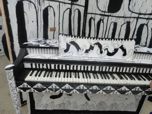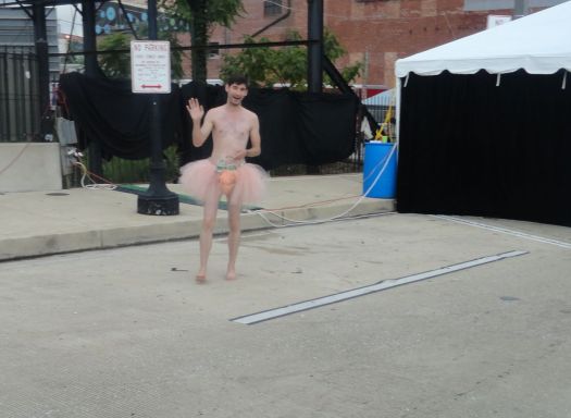 1- ferris wheel in the middle of the city 2- dude in peach tutu 3- massive John Waters face 4- side of a ship 5- black and white piano 6- confetti on the ground 7- lots of luggage 8- a view from Charles Street 9- people being festive with balloons 10- a performance “air horns.. I’m obsessed with that sound!”