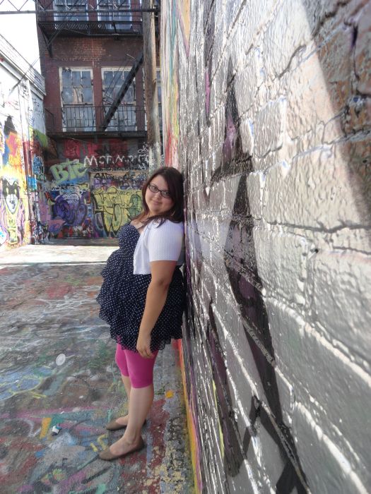 At the beginning of June, Charlotte and I went into the city for the day originally to go to a street festival. The festival was very small and not great so we walked to Eddie’s and ate lunch outside then we started driving. We stopped because we saw this patch of sidewalk that was painted! We’ve been down that way before a lot and this was the first time either of us saw it, so we turned around and got out to play.