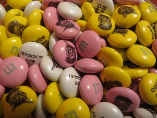 Speaking of accessories, the human who plays with me got the human who I sleep with some candy with my face on them. It was a while ago, on the day where there was crinkly paper all over the place. That was a good day. But why did they put my face on them? Is that some kind of message that you’re the alpha cat? Because I will destroy you all.