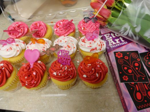 Also, to start the week off I brought in some tulips, cupcakes, and valentines for my office. They went over very well. 🙂