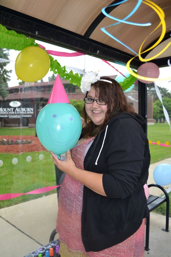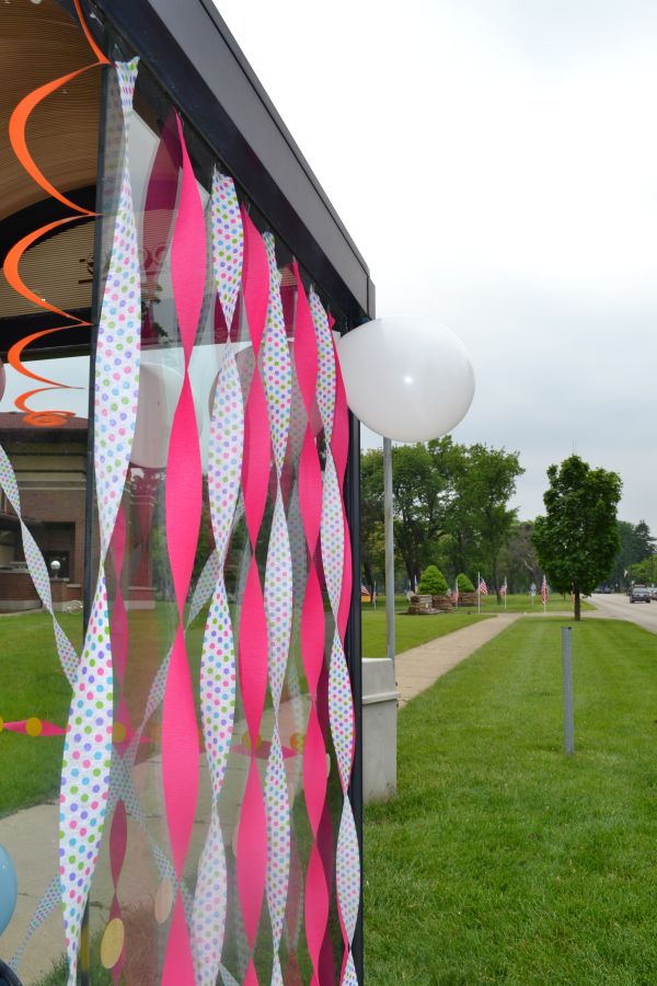 One of the best things I did while I was in Chicago was decorate a bus stop shelter. April and I went to Party City and bought balloons, confetti, garland, streamers, and party hats. Then we met up with Jes, Lauren, and Kira and found the bus stop we wanted to decorate.