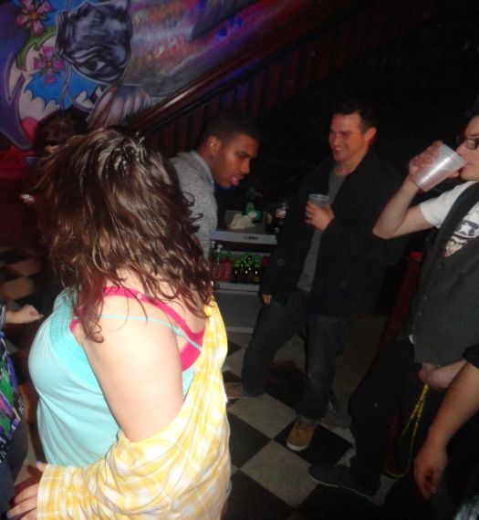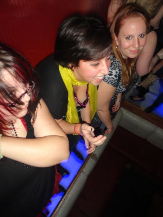 For Katie’s birthday we went to Power Plant. I was feeling pretty awful, but I was determined to go and have a good time. First we went to PBR to utilize the bottomless cup till 11pm deal. All ladies were called to dance on the ledge, so we went (which you see here). I saw an old high school friend which prompted me to text another high school friend and she (Tiffany) actually ended up meeting us at the next bar. The next bar was Howl At The Moon, which is a dueling piano bar. We hung out in the back, which was unusual for us. There was a man with bagpipes and Katie got to dance on stage. After the bar closed Katie wanted to get food at Sip N Bite, so we did.