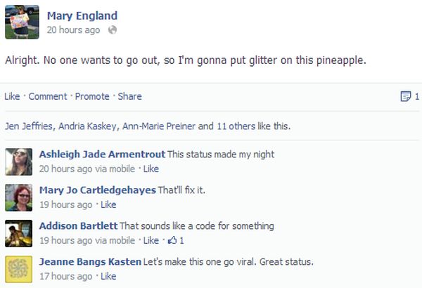 And for good measure, the Facebook status: