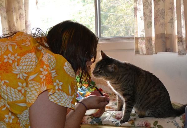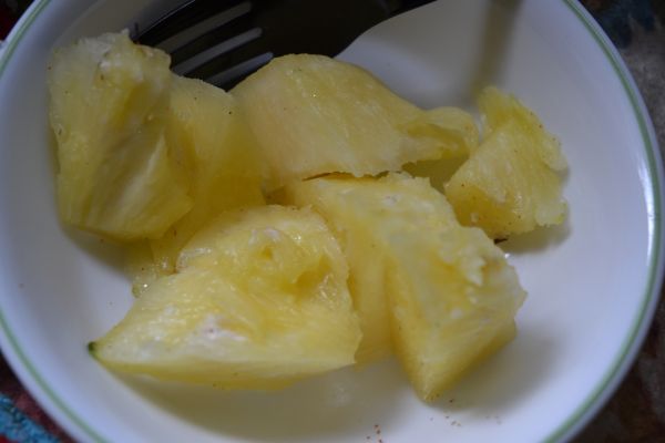 Don’t worry, though. I counteracted any negative nonsense by wearing a pineapple dress while I ate it. Bug likes the smell of pineapple, but is not interested in it as a food.