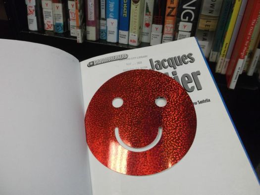 I work at a library that is open to the general public and is also a high school library; as you can imagine it’s loaded with teenagers. I thought they could use some positive messages, so I bought some smiley faces at Target and cut some phrases I liked from magazines.