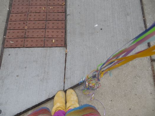 I didn’t hand them all out, so I tied the remaining ones to parking meters down the block. I’ve kept the “Have a great day!” sign in my car and I put it on top of my backpack and other belongings when I leave them in my car in the city. I figure if that doesn’t deter someone from breaking into my car, I don’t know what will. 🙂