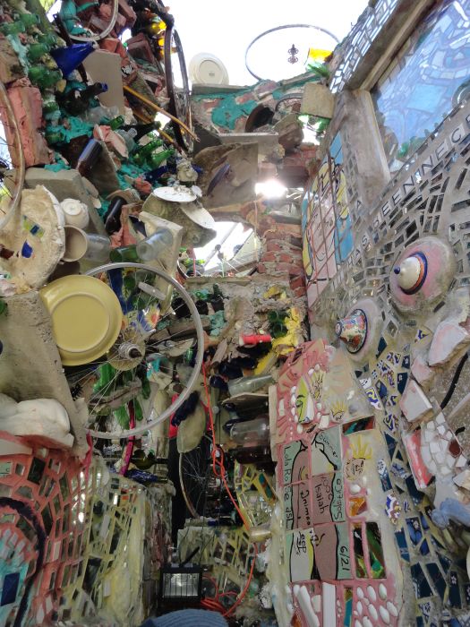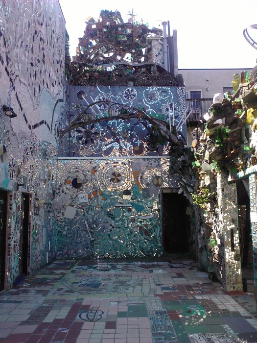 Today, Matt and I went to Philadelphia to see the Magic Gardens. It’s basically a huge and fantastic mosaic art piece that has been turned into an area that you can walk around and absorb all of the color, shimmer, and greatness. The artwork is done by Isaiah Zagar and he actually has a lot of art installations scattered throughout the rest of South Street (where Magic Gardens is located).