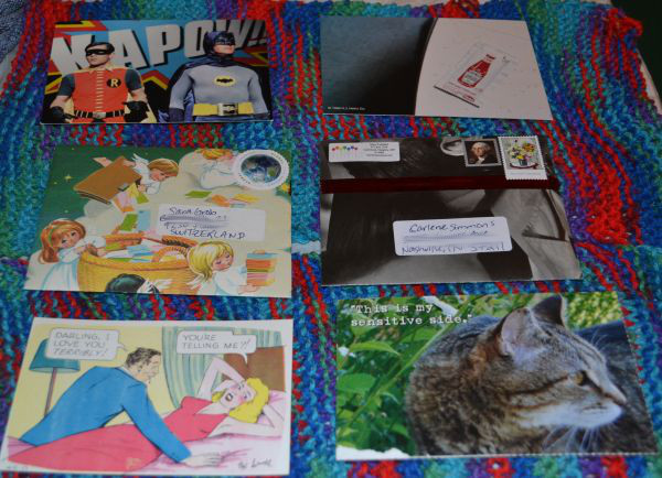 Even though I’m still behind, I have stuff to show! I checked my box once last week and I have some outgoing as well. 🙂 I appreciate all the mail I receive.