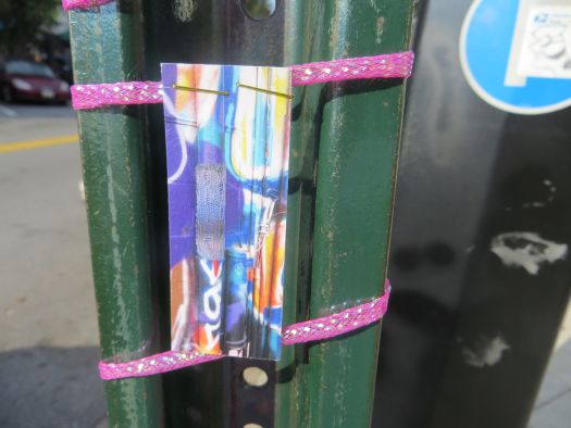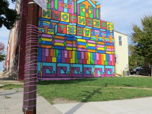 I have made a lot of purchases in my life where I wasn’t really sure what I was going to do with that item, but I know I needed to have it. One of these items was some iridescent purple stretchy tubing from Hobby Lobby. I’ve had it in the corner for months, looking beautiful and shiny, but never knew what to do with it. I decided that I needed to put it up and I used it to wrap around two poles in Baltimore. One in Hampden and one near North Avenue and Greenmount. The latter is in front of a beautiful mural. I hope people enjoy it.