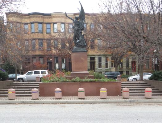 A couple of months ago I did some yarnbombing accents on cement pillars. I decided to do it again, but with a rainbow theme. These little pillars are by MICA on Mount Royal Avenue. The last pillar has a little bit of each color on it. I really like how it turned out, you get the rainbow experience as you drive by or see it from across the street.