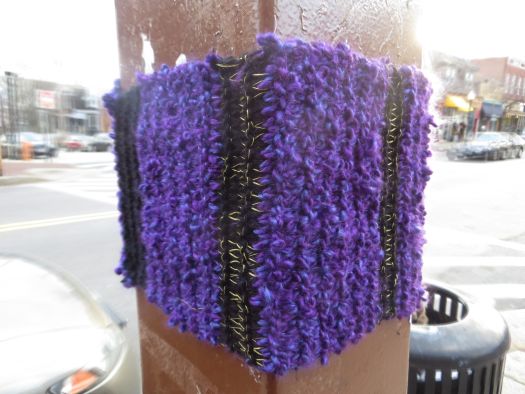 I should say, for the record, that I don’t care about football. I actually don’t really care about most sports. But I like when the morale of the entire city is up, so I wanted to participate in that. Everyone around here is pretty excited about the Ravens being in the Superbowl today, so I decided to make a yarnbombing to celebrate it.