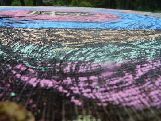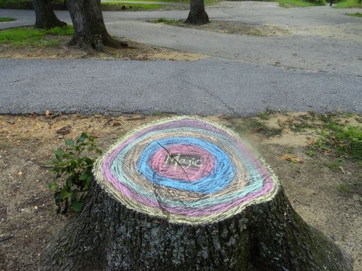On my way back to the car, after feeding the ducks at the park, I stopped at a large tree stump. I remembered that I had sidewalk chalk in the car and I quickly went to get it. Then I just filled the top of the stump up with bright sidewalk chalk.