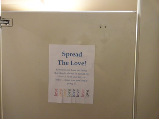 We both made flyers about spreading love and posted them near us. Make sure you check out her version. She made each sign individually!