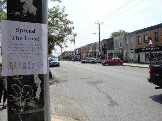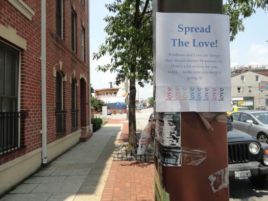 I posted twelve all over Baltimore. I tried to hit the main neighborhoods and one of my friends spotted one without realizing it was me! 🙂 She also told me that people have been taking the love strips, so that’s awesome!