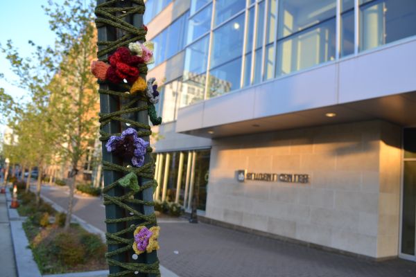 Last month, Erika (who I met at the Fun A Day opening) recommended me to the knitting group at the University of Baltimore. I went to one of their meetings and we talked about yarnbombing, planned what they were going to do, and of course.. knit! They are a very nice group of girls.
