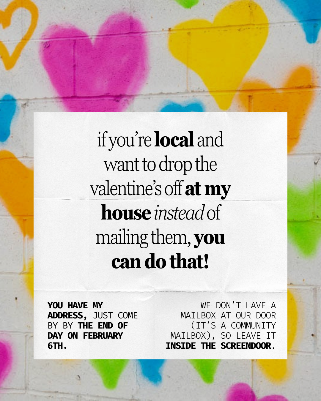 “Dear Friend,” “To My Valentine,” “To Someone Wonderful,” “Hi There,” “Beautiful Human,” etc.