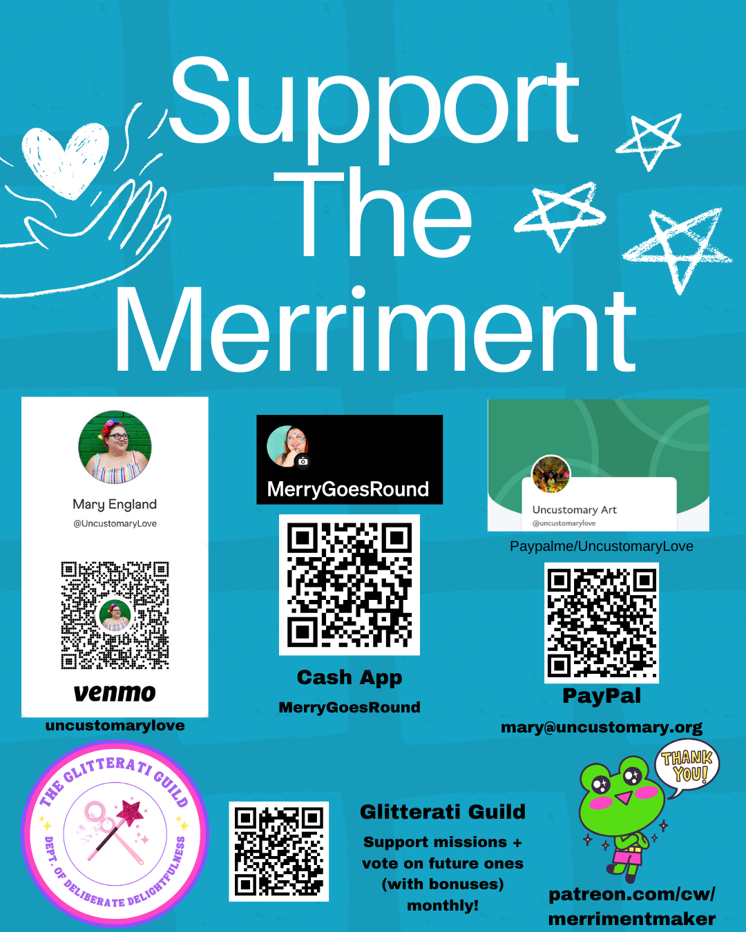 If you'd like to support us additionally to help cover supplies, you can do that via Venmo, PayPal, CashApp, or by joining the Glitterati Guild (Patreon) where you can help fund missions, choose specific ones to sponsor, vote on upcoming projects monthly and get bonuses!