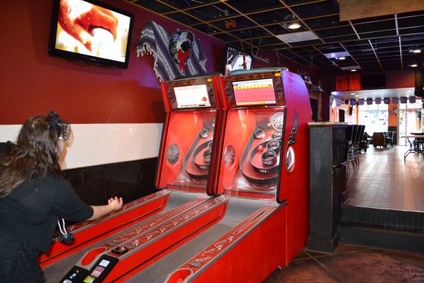 + playing skee ball in a restaurant